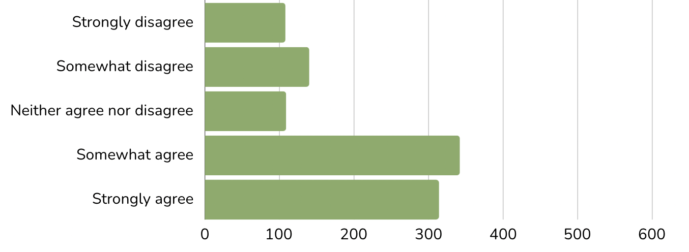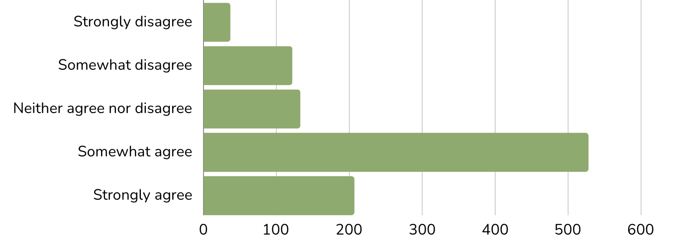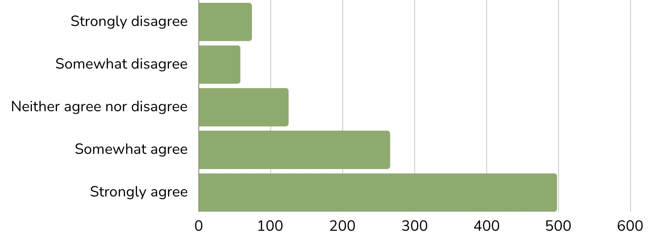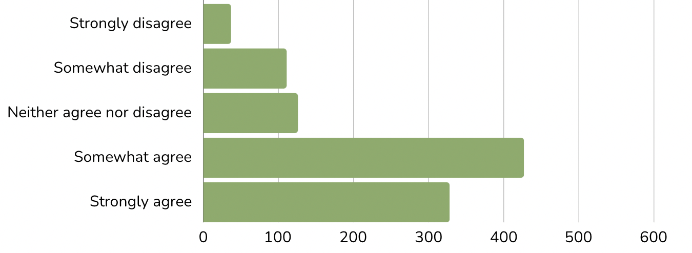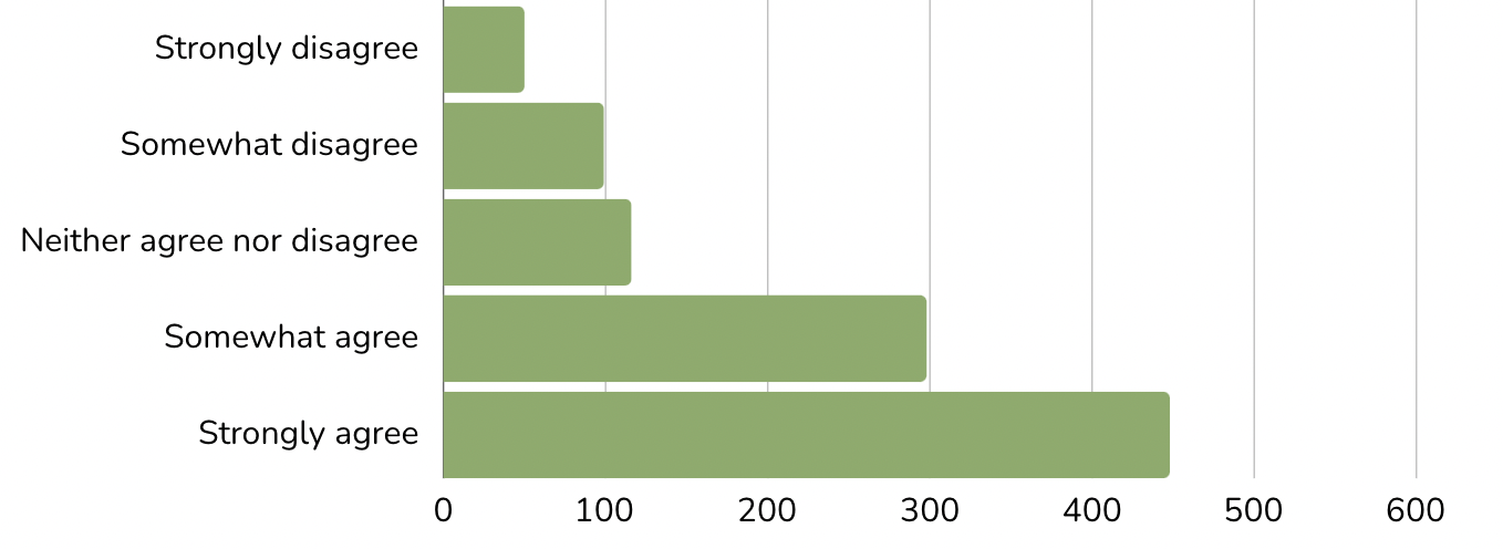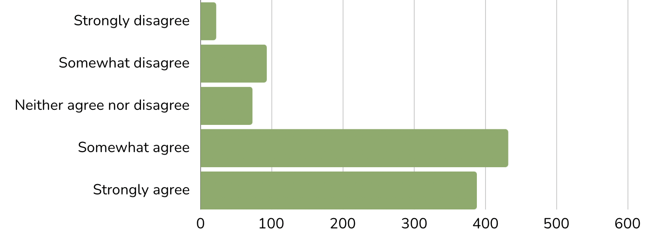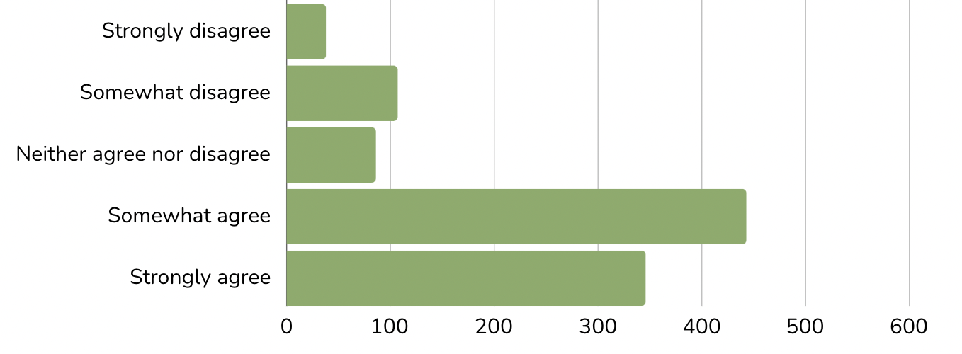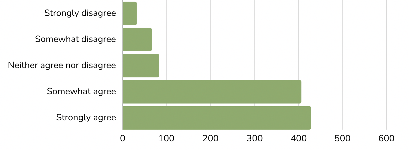 87% of survey respondents “somewhat agree” or “strongly agree” that the city should add overpasses or underpasses to improve train traffic and public safety responses in Des Plaines.