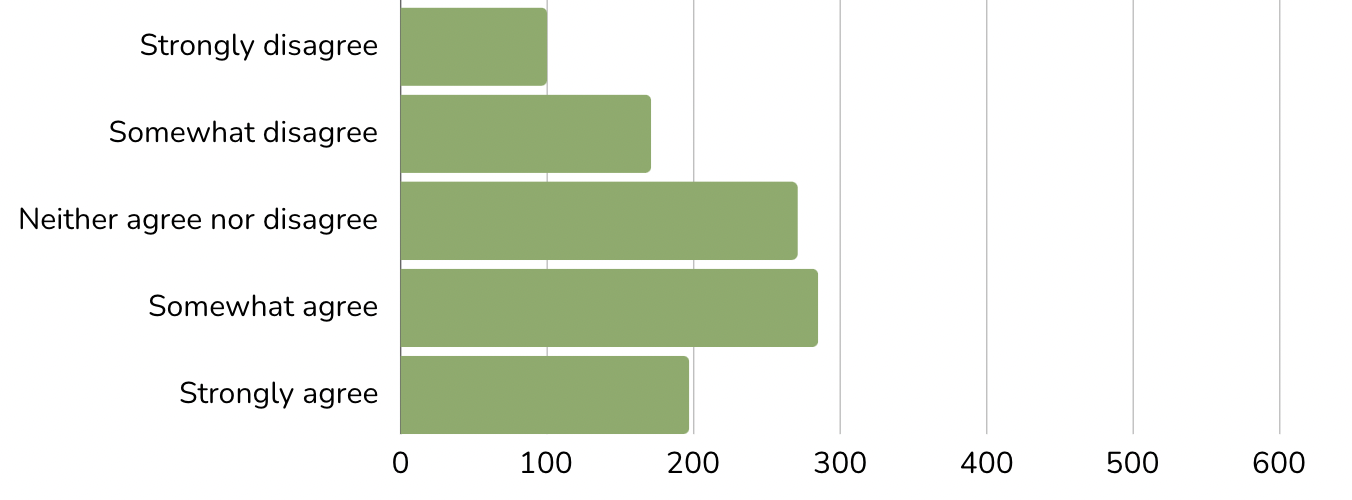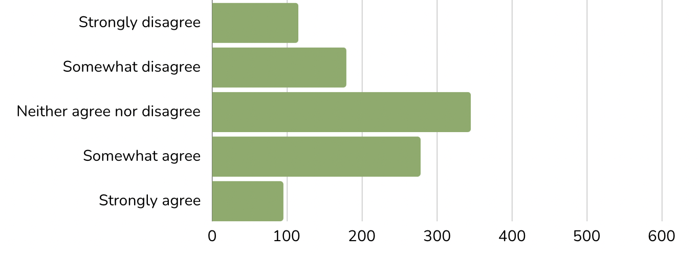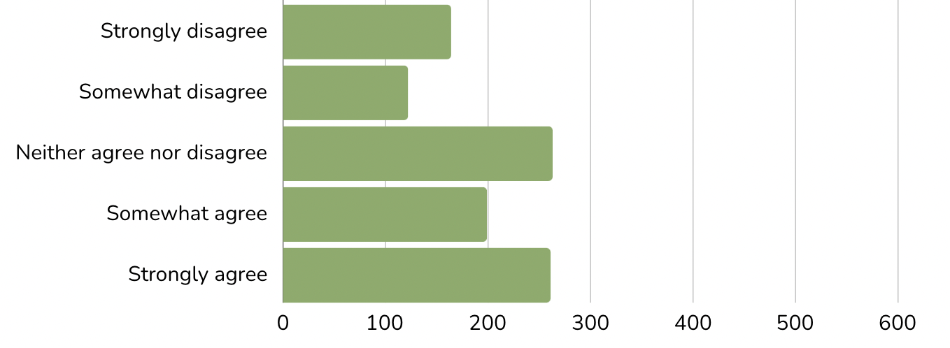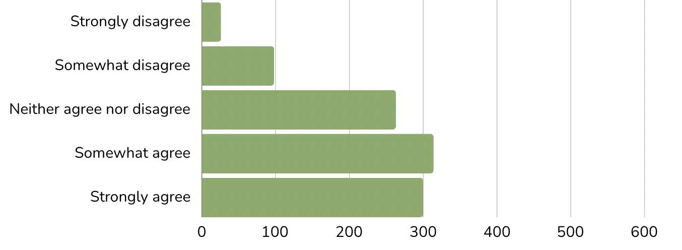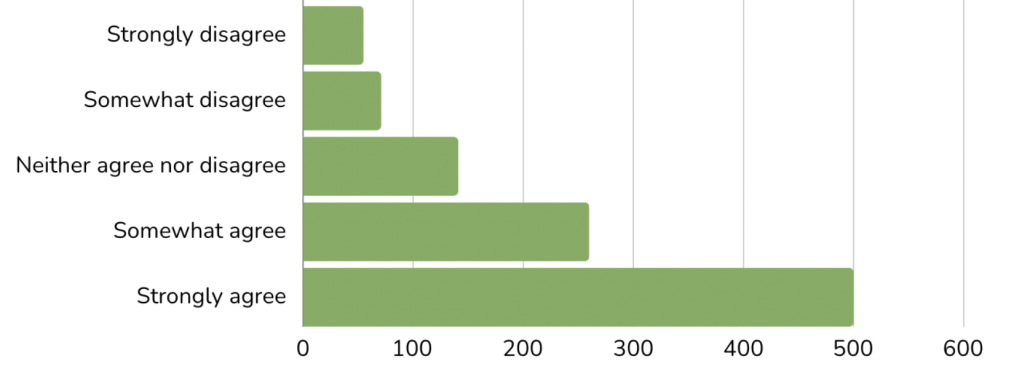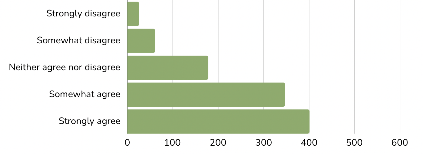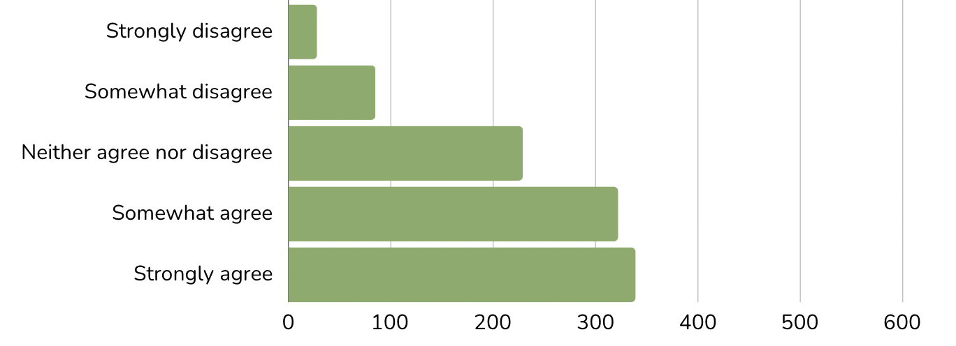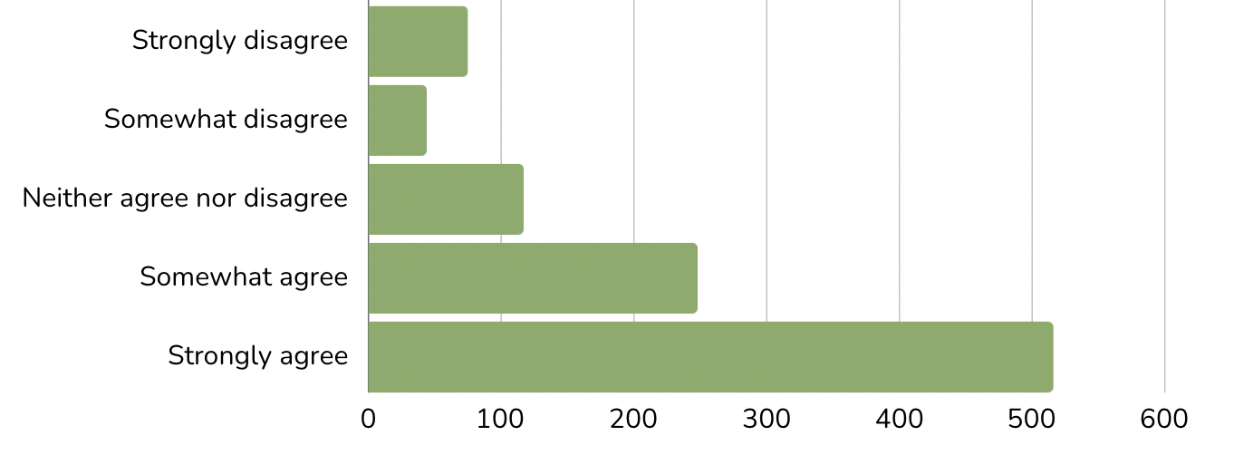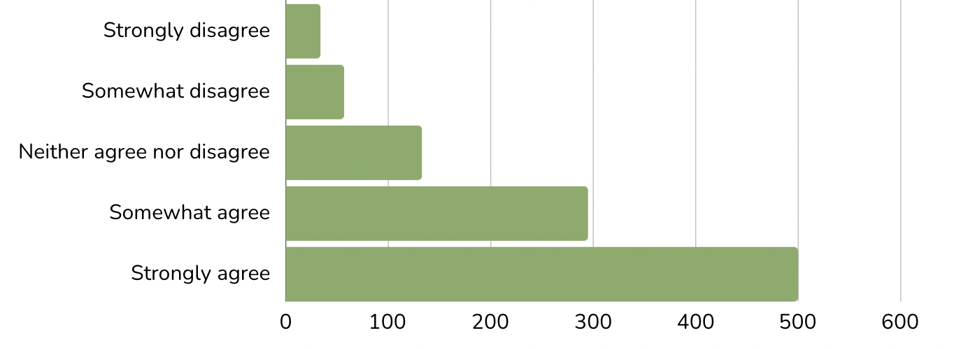 87% of survey respondents “somewhat agree” or “strongly agree” that the city should add overpasses or underpasses to improve train traffic and public safety responses in Des Plaines.