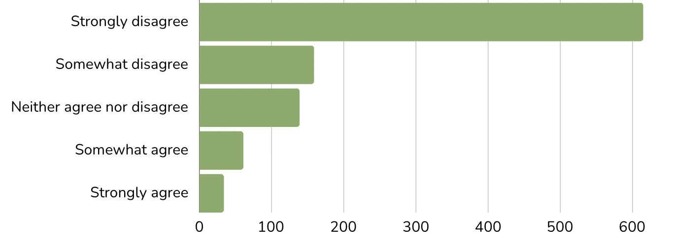 74.% of survey respondents “agree” or “strongly agree” that the city should consider opportunities to add non-police officer responses to non-violent 911 calls such as mental health crises, noise complaints, or parking issues.