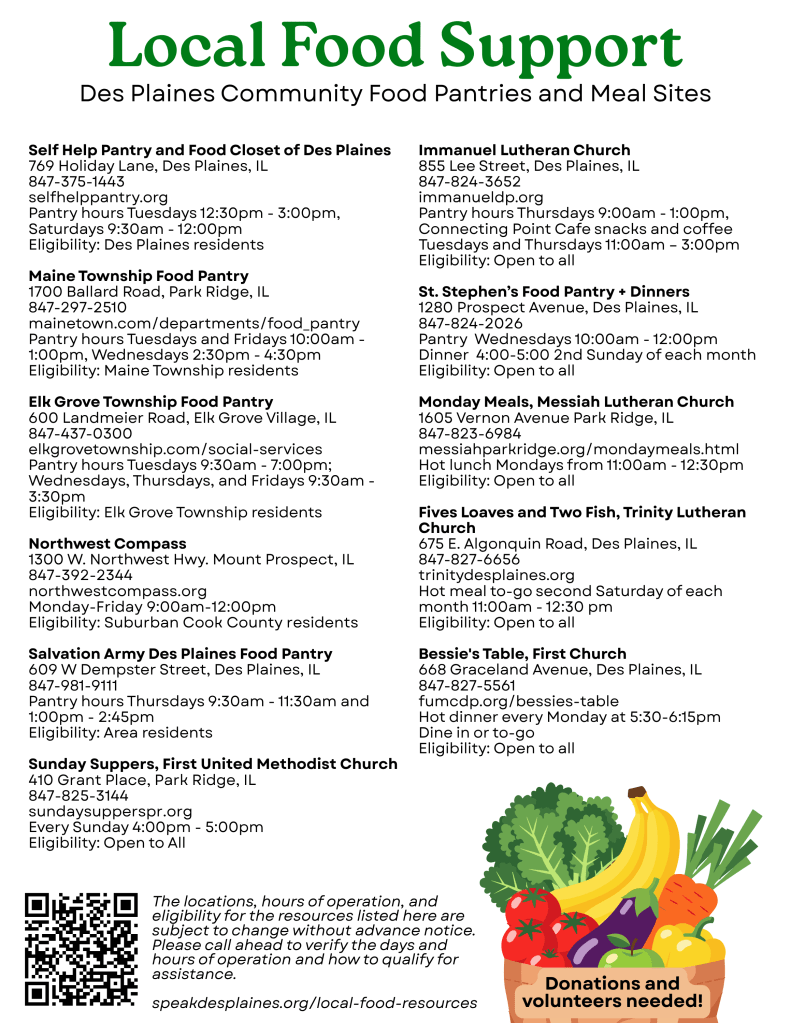 The locations, hours of operation, and eligibility for the resources listed here are subject to change without advance notice. Please call ahead to verify the days and hours of operation and how to qualify for assistance.